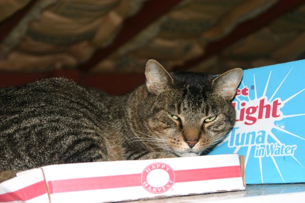 Mister must have gone in when the garage door was open. He was still inside when the car came back, and of course he hid in fear of the noise of the car and the door closing. And then it seems my neighbor didn’t go out and leave the door open again until today. Mister was too slow to escape when the door was only open for long enough for the car to go out. Poor Mister cat! We hope he might have been able to catch a mouse or two to eat while he was stuck inside.